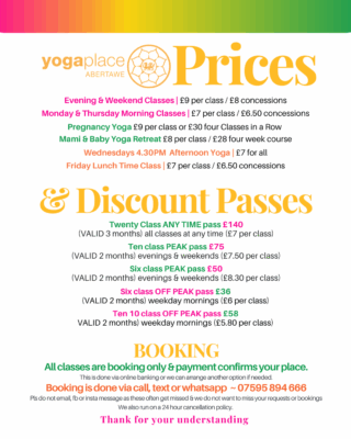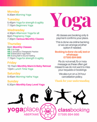 Yoga Classes are booking only and receipt of payment confirms your place.